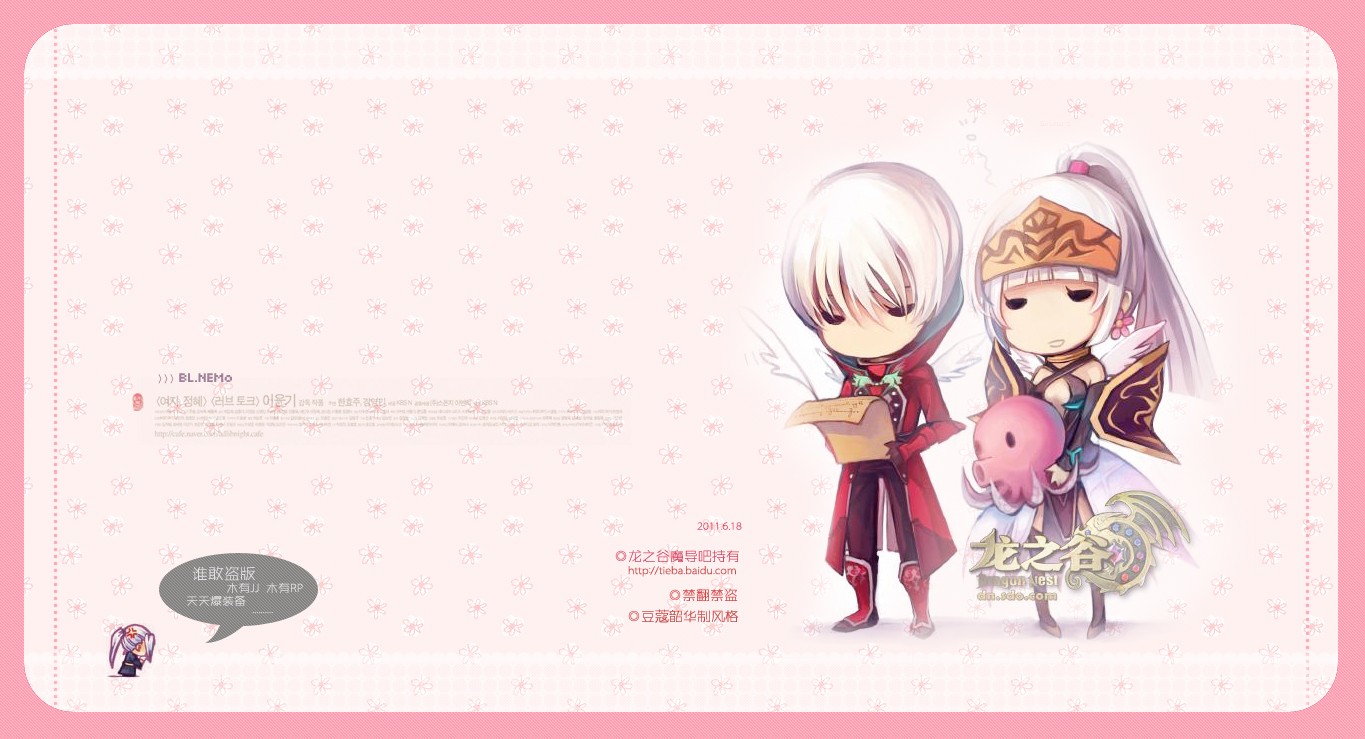 是这样子的,前段时间我百度了一张很可爱的图片,于是做成了桌面,但是当时我并不知道这幅图的作者是谁,并且将做好的桌面分享到了龙之谷贴吧与龙之谷魔导吧。