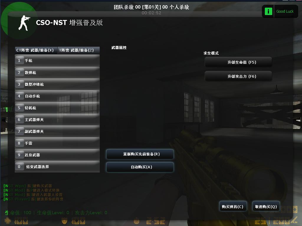 CSO-NST1011 增强普及版 2nd 整合板!在极品三轮车的CSO-NST1011 增强普及版 2nd基础上根据自己的喜好整理而成!加入一些CF模型!CF地图<生化金字塔,角斗厂等~谢谢地图制作者呆蛙,霸唱等等~>!!!(只是用到一些CF的模型,并非本人支持CF)支持BOT中文语言!!!不喜勿入!!!(纯属个人好爱!!!)