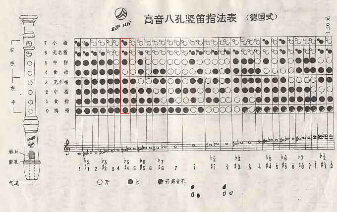 BTW. 笛身正面的指孔,从上往下依次被编号为1、2、3、4、5、6、7,背后的那个是0孔(也叫高音孔)