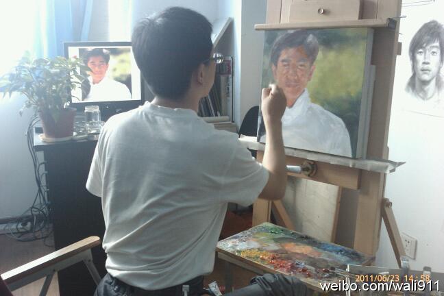 油画可不是一般人能画,要学过才行,楼主图里的画家显然学过。