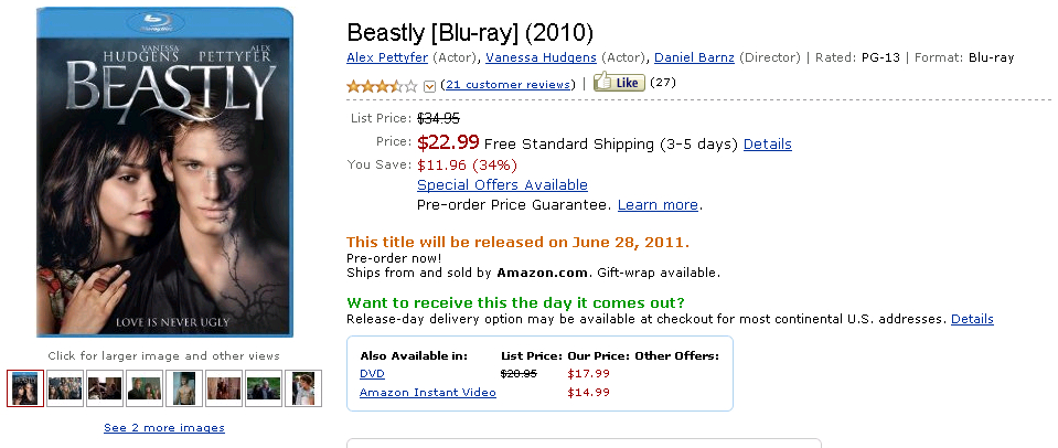 【Beastly】Beastly美国已经发行DVD版本