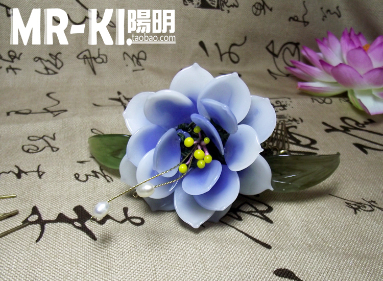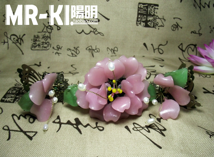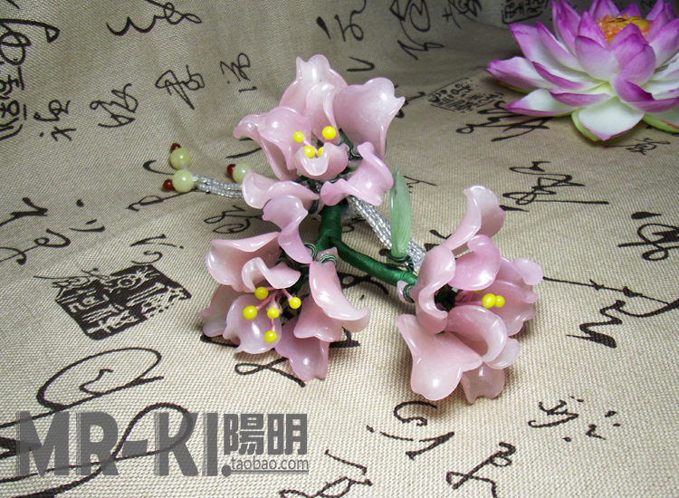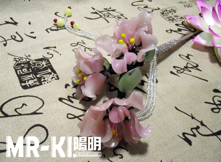 嫩粉料器簪花