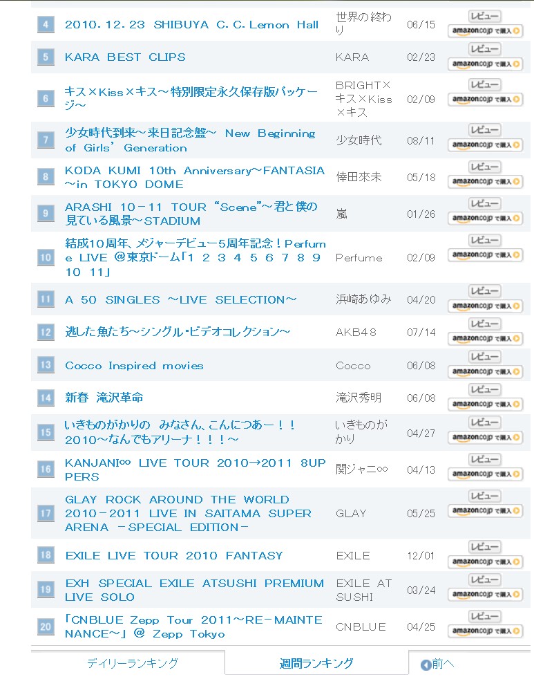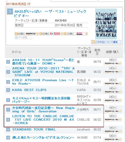 看到LL的贴, 上了ORICON的网页逛逛, 发现CNBLUE的ZEPP TOUR DVD在周榜占二十位, 长卖型啊!