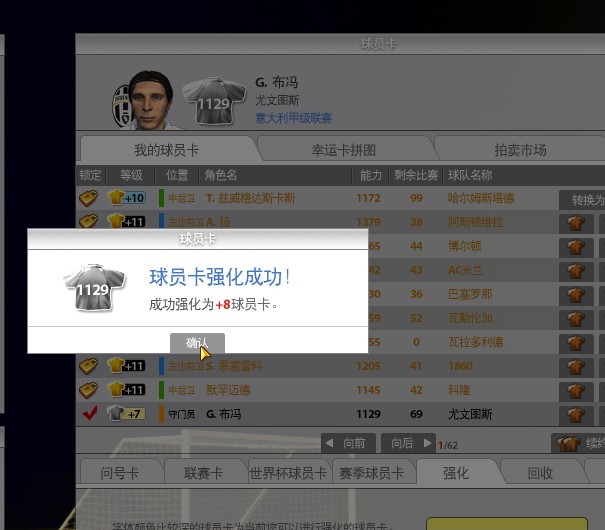 又花4W买了张单卡。垫了3张+2的之后,闭上眼睛果断冲+7布冯,睁眼一看,乐死我了,哈哈。
