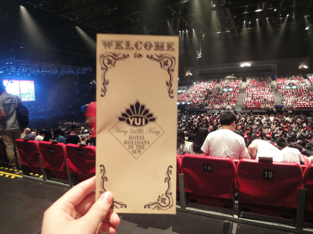 这次,真的很给力(唯一的不足嘛 就是TOMOTHER的时候…… YUI很安静弹唱,但是大家还是很大的声音打着节拍,真的很影响效果。。。哎~不过在HK真是最好的选择我觉得在内地估计效果会更加差。。)