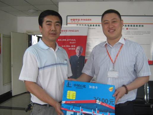 第一个奖品就是平安电话车险的加油卡,运气好的不得了啊