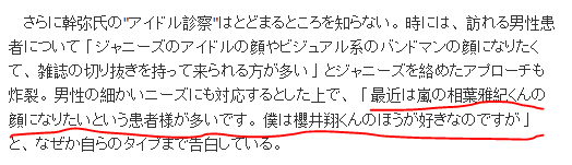 [最近想照着aiba的脸整容的人很多,我自己的话比较喜欢樱井翔的脸。]