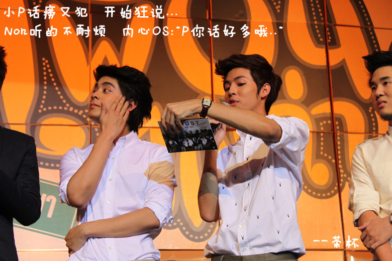 Mini Concert结束的时候~~大家合照~~NON和小P跪在一起~~都拿着花~~~都在笑~~~这个动作我照了一堆啊~~~其实联想到了当年MP的一张图呃。。。。世事难料啊。。。。