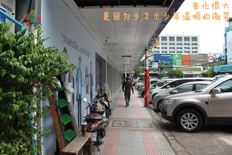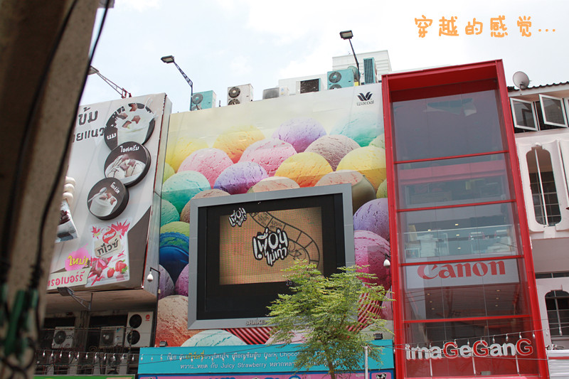暹罗广场不大,要找到那些场景不是很难。那天总有一种穿越的感觉......所有的场景看起来熟悉的可怕,却又那么的陌生。站在他们当时拍戏的地点,电影里的场景历历在目,仿佛真的能看到他们的故事,可什么也没有发生。就像Mew和Tong与我们不在一个空间里,但却又都同时真实的存在着。拿着打出来的电影截图,试图通过一切蛛丝马迹来确定下当年他们的位置,找到了会兴奋一下,但又会觉得物是人非。(其实当时在哪的时候还是很兴奋的..毕竟是梦寐以求的地方嘛~~只不过现在回想起来有些桑感呃.....- -)
