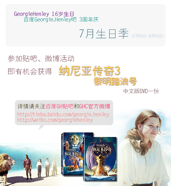 成为本吧的成员以及关注GHC围脖成为@GeorgieHenley的粉丝即可!