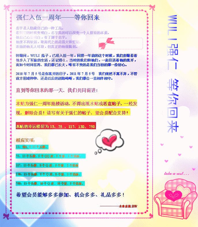 ┣110703★邀请┫九年思守未来家族诚邀您一同参加强仁入伍周年活动