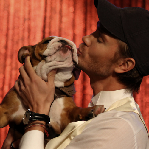 瞧狗狗的爪子放在Chad的肩上~~~好可爱啊~~