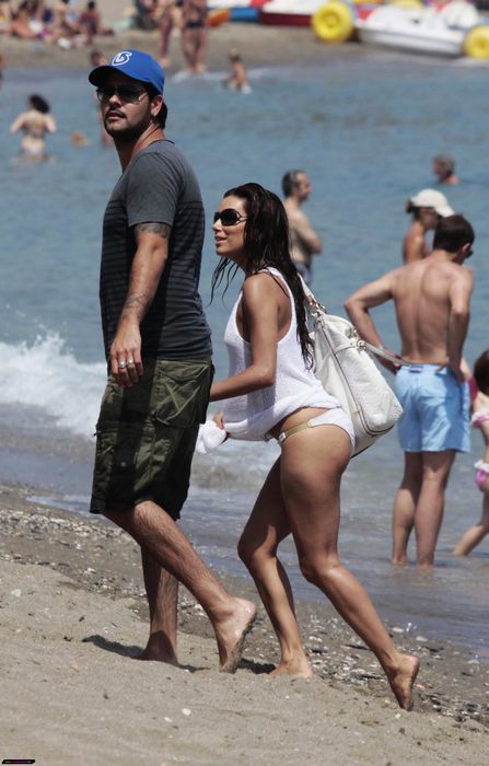 2011.07.02 Eva和男友Eduardo在西班牙海滩度假,白色比基尼