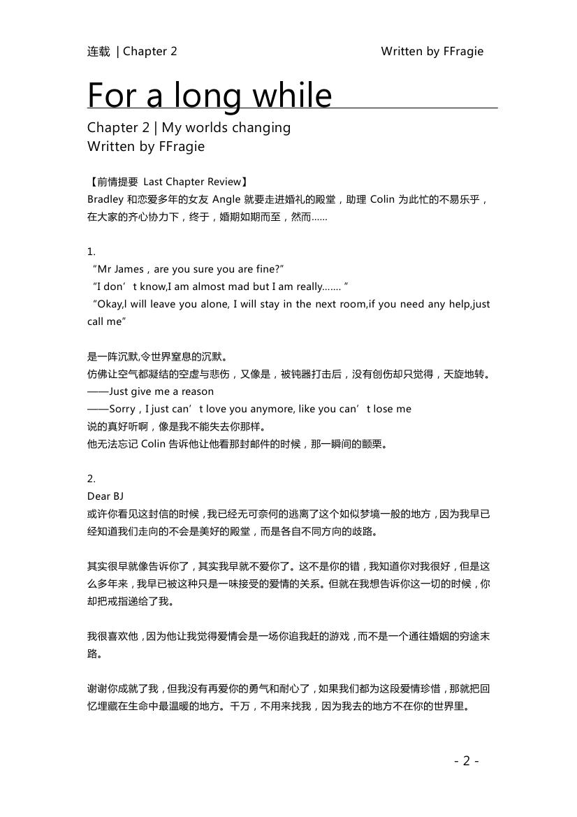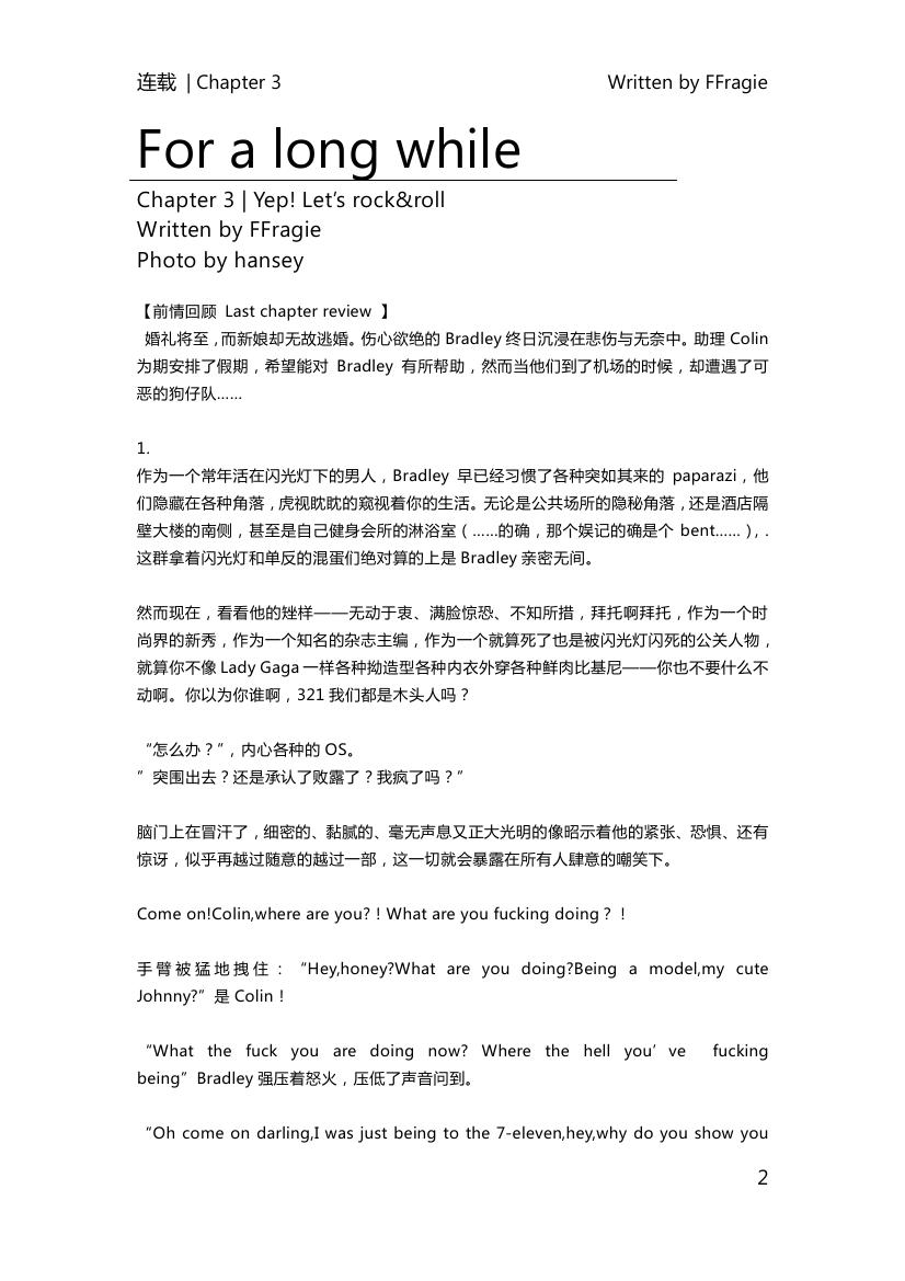 【正式连载发布】【CP 未知】治愈系中篇For a long while『全篇高清