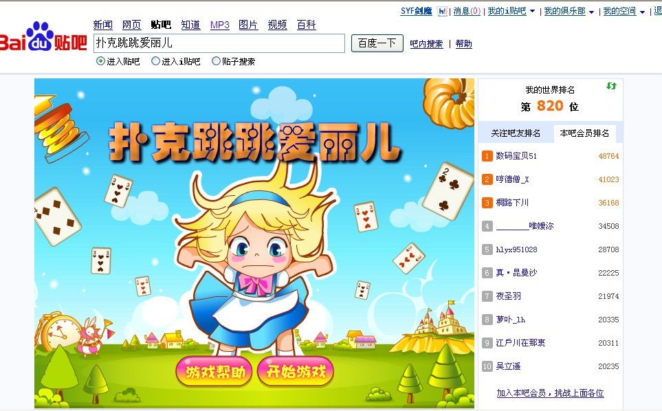 扑克跳跳爱丽儿 :4236, 晋级前1000名,1001名那位,要加油哦:)