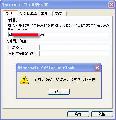 Outlook 2007 问题:电子邮件设置→常规→帐户名称已被占用