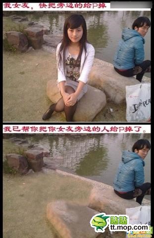 求PS高手,麻烦您帮我把女朋友旁边的人P掉!