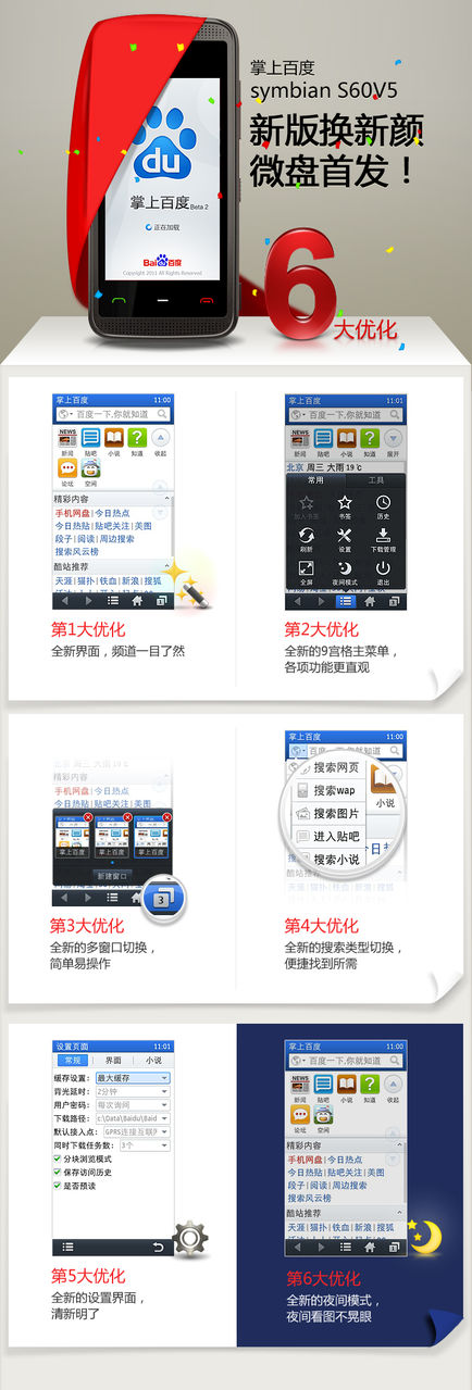 掌上百度Symbian S60v5新版今天在微盘首发啦!V5的同学可以前往微盘下载更新。下载时别忘了转发微博哦,让更多的人看到哈~