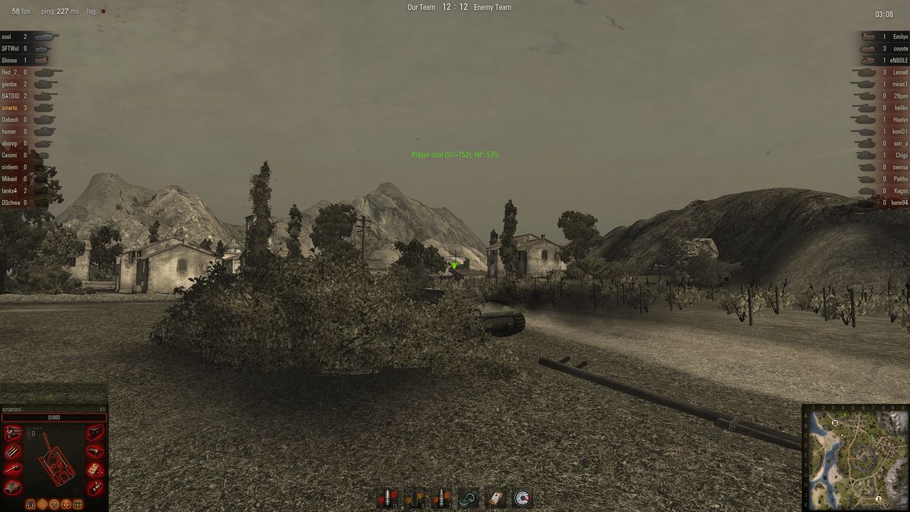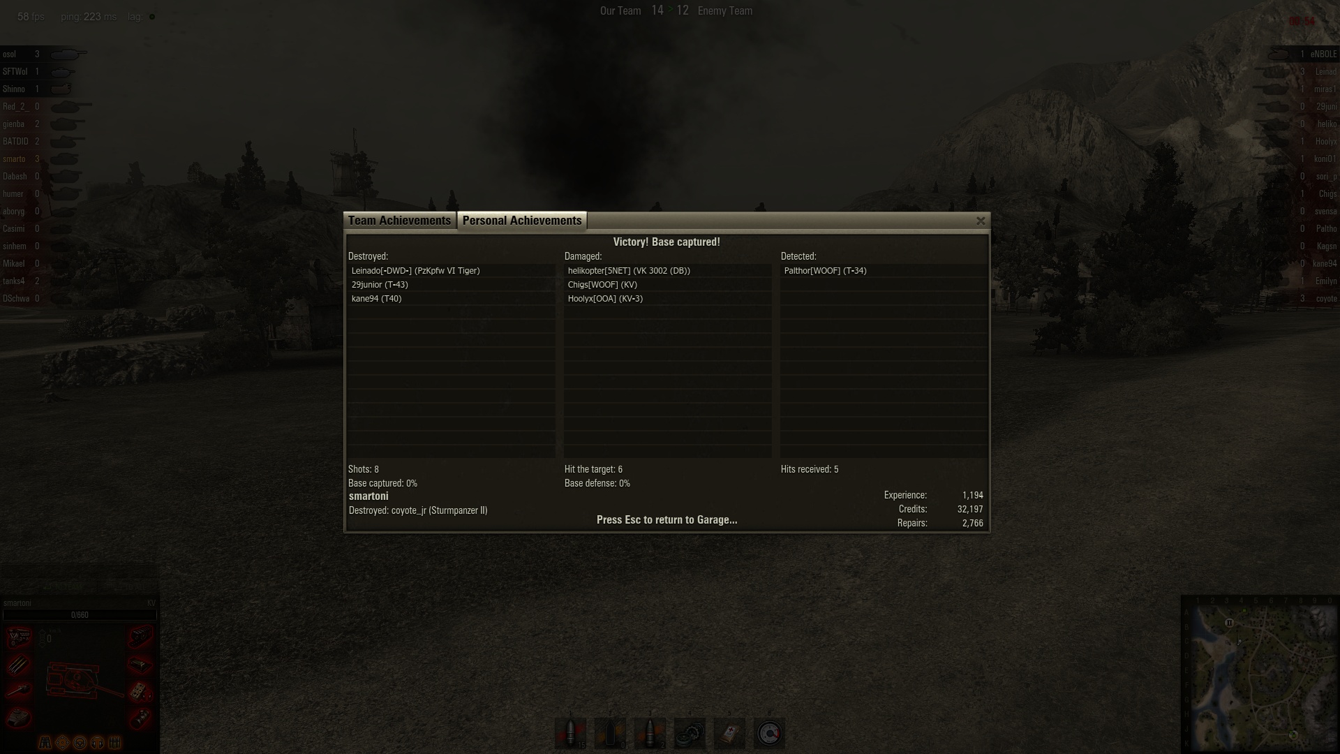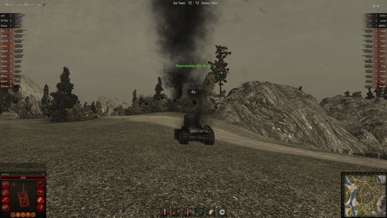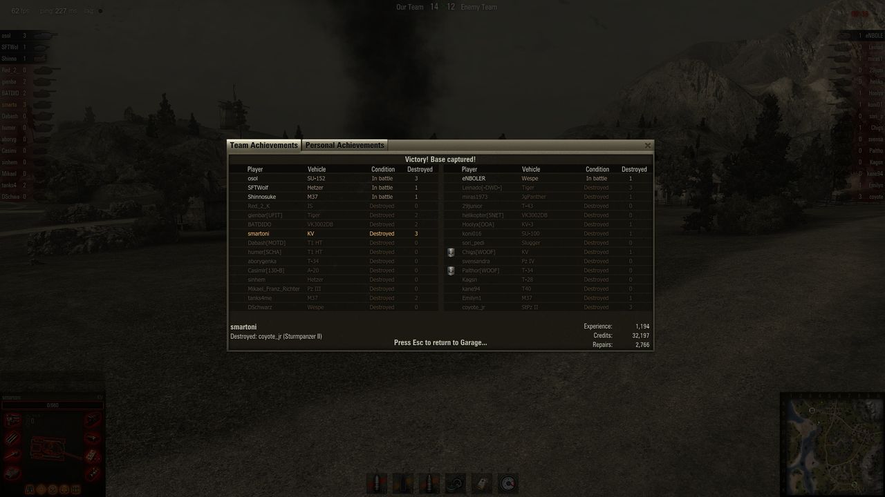中间守山下路 打掉一个残雪护士 一个t40美国td 右边一个残血德国db 。最后kv被火炮砸死 胜利完成看门任务。其实老虎出来的时候一炮没打着我 被我送走了 。最后家里剩下两个td一个火炮,冲过去灭了他们。kv还是老当益壮啊