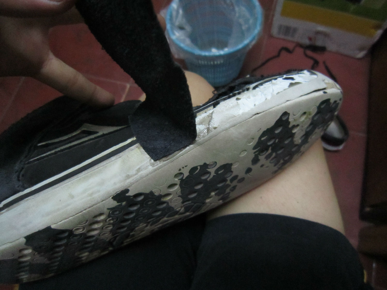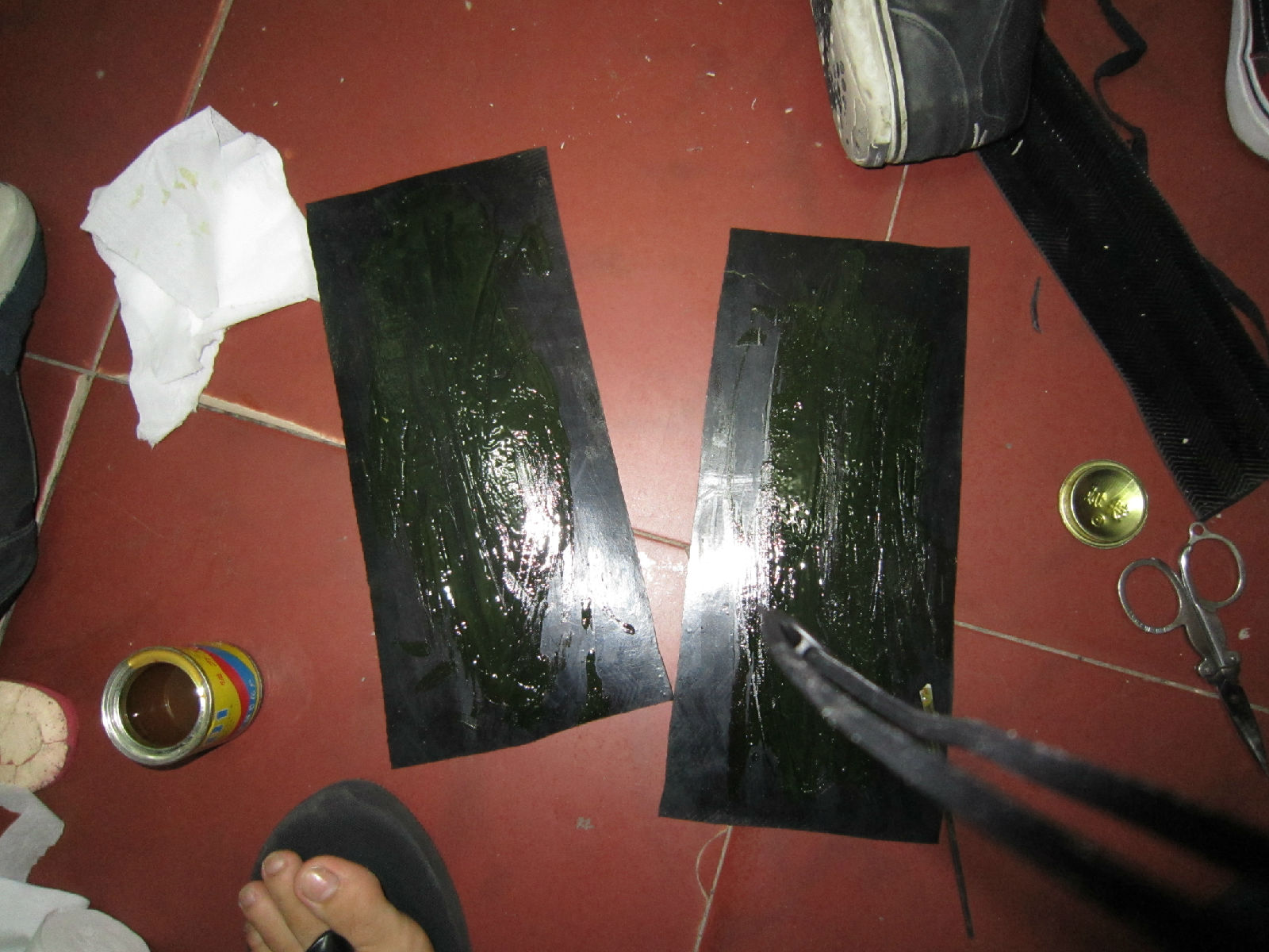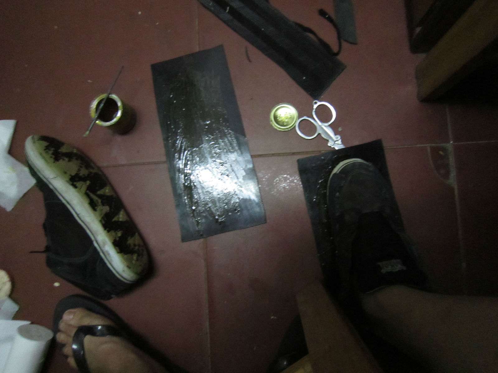 两只脚都贴好了。踩啊踩啊踩。然后我就穿着去清理我手上的胶水了。。。