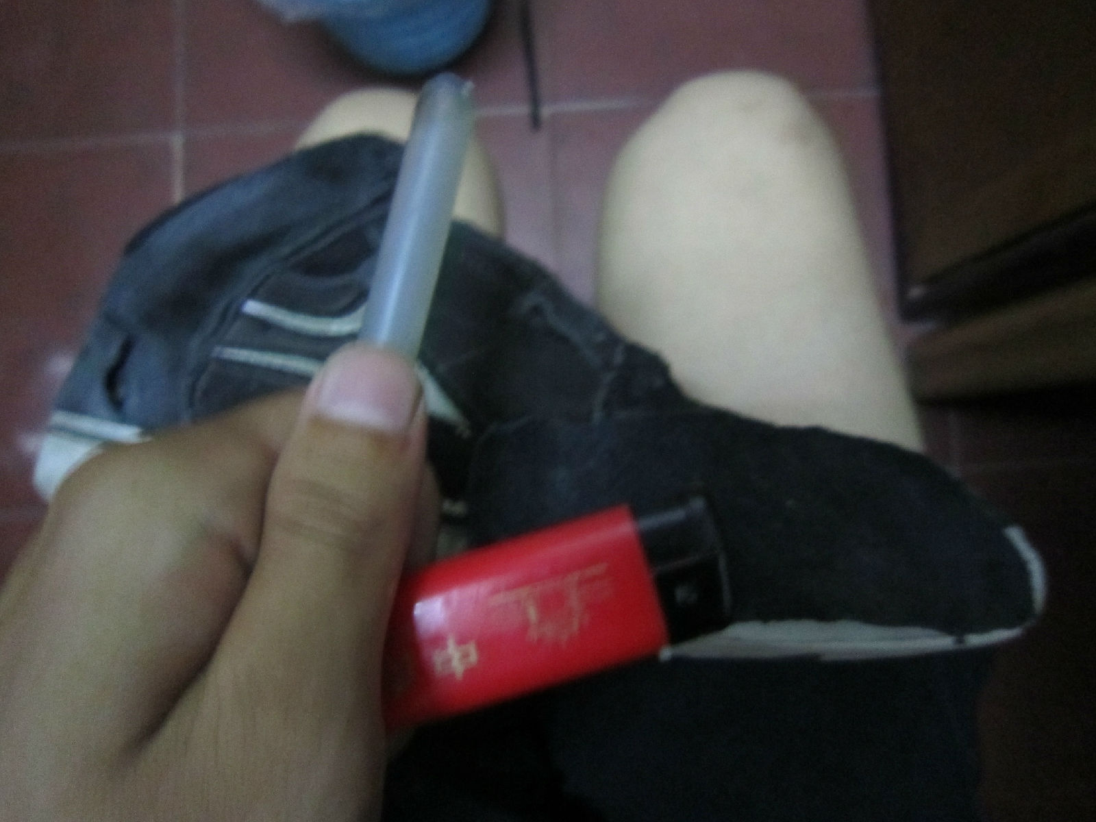 这时候需要热熔胶和打火机了。用打火机烧热熔胶的头。他会软了。用外焰快。用内焰不会变黑。