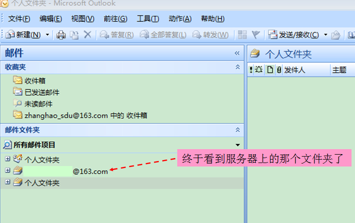 我使用的是Outlook2007,与163邮箱相连。当我打开Outlook时,只看到个人文件夹,却没有看到服务器的那个文件夹。如果我想用Outlook打开163邮箱收发邮件,但这些均不保留在本地上,应该如何做到啊……