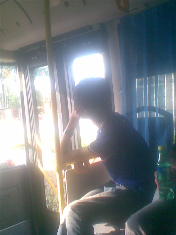 第一次坐在福州的公交车上, 照片中的人是铥铥, 现在已经没读了。