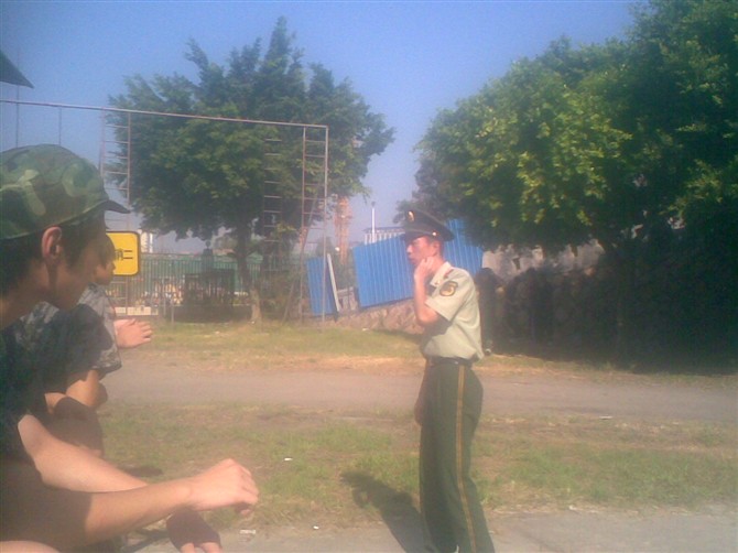 第一次见到教官, 教官是个浙江人, 在带完我们之后回部队之后也退伍了, 现在快订婚了吧~