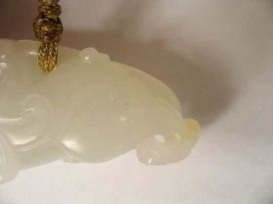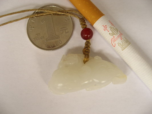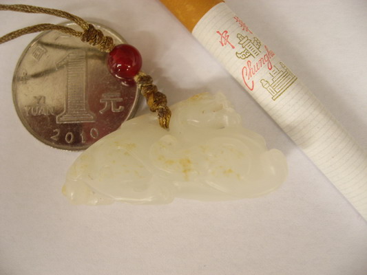 谢谢品评。玉质来说,与龙圈相比,致密度要差些,但料子还是干净,没棉没裂没杂质。呵呵,黑点的话,可能是一段时间没刷,留了点宝泥。工艺中上,至少瑞兽的气势出来了。价格吗,不说了。