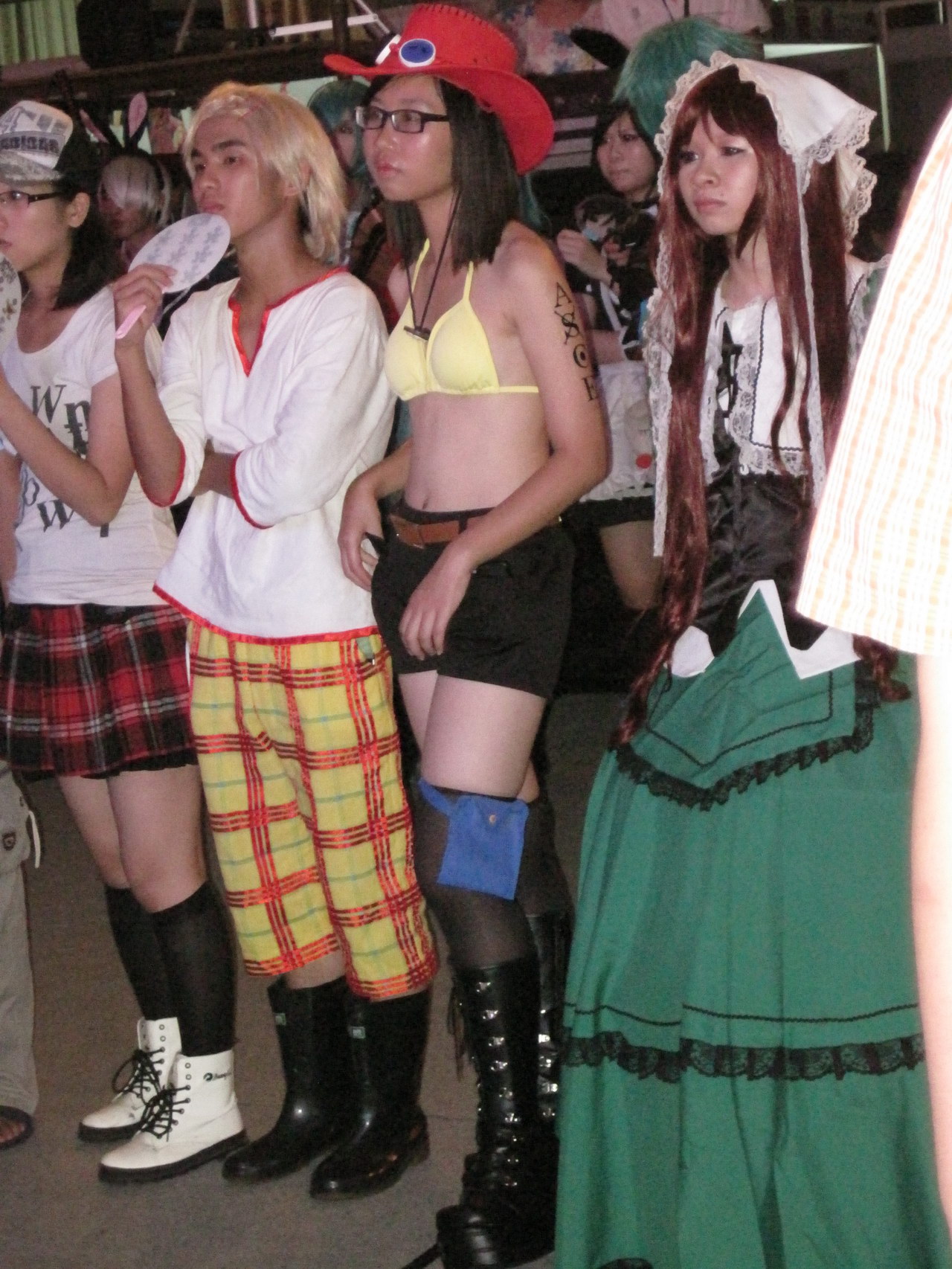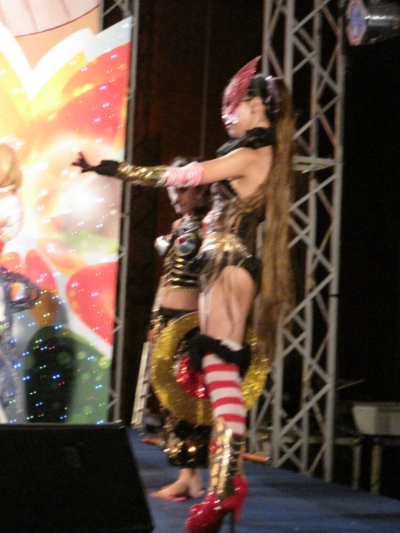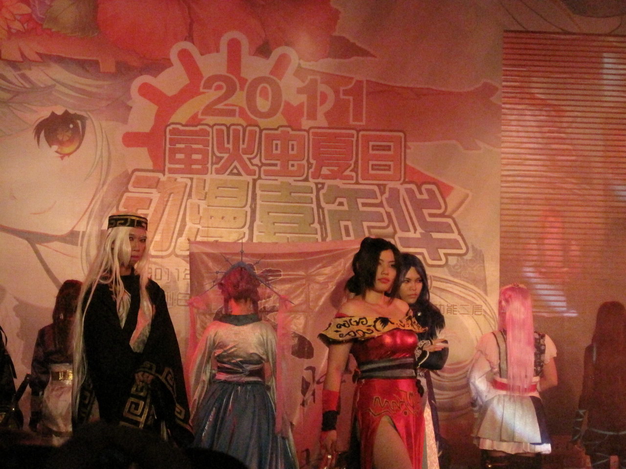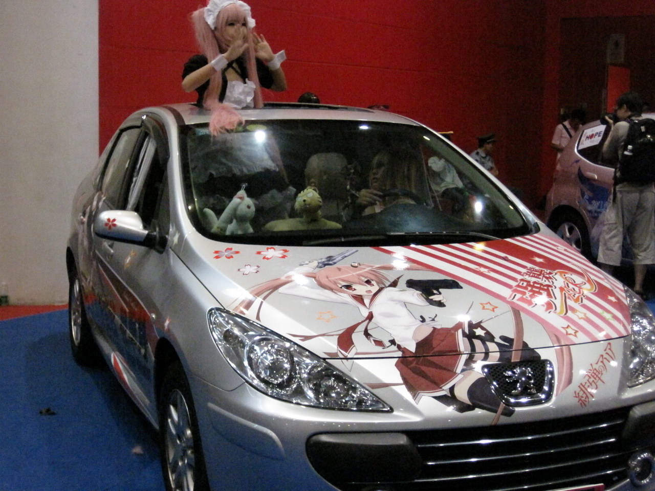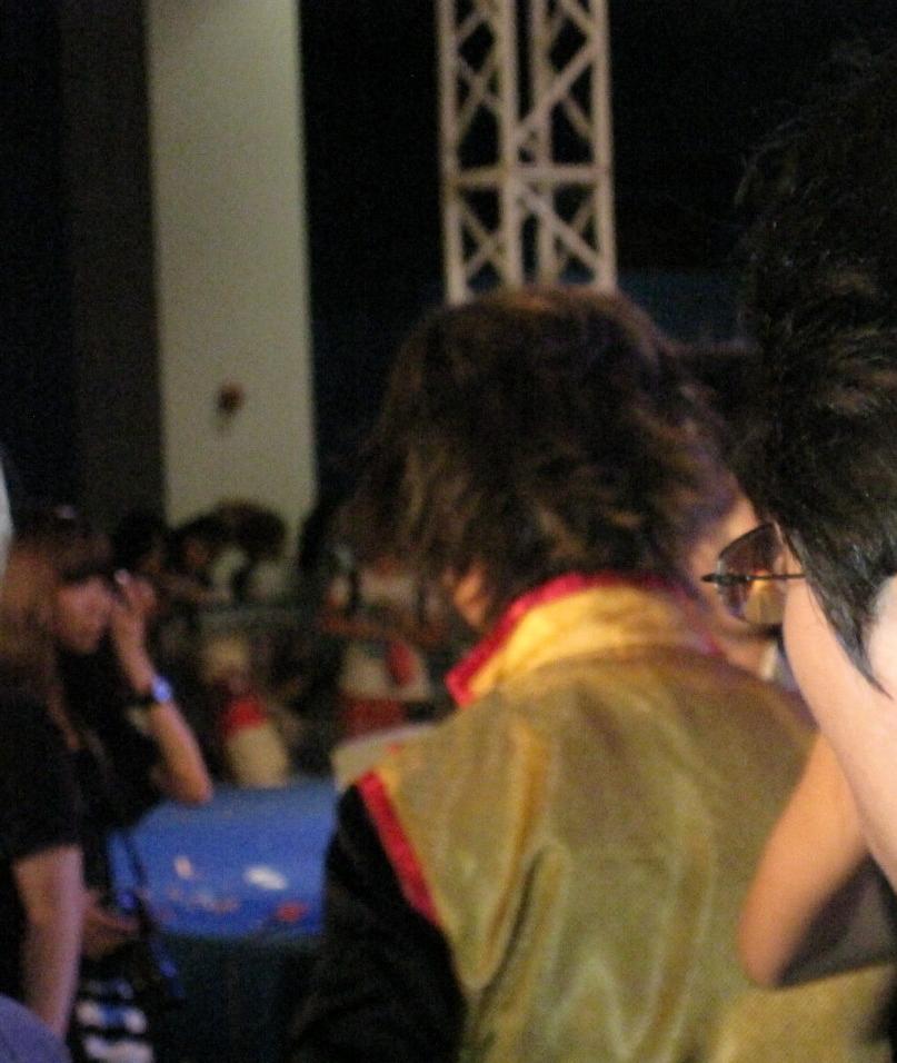 里面的动漫周边感觉没什么特别,很多制作比较粗糙,根本提不起购买的欲望,和同事逛了一圈,就只是拍了几张coser和痛车的照片(发觉COSER们都是有钱银啊~~几乎人手一部单反!!),接着就是站在舞台前看宅王比赛(宅王有1W的RMB奖金啊!!早知偶也报名参加0.0)、动漫歌曲比赛、cosplay(想找个地方休息一下都没有!!),表演结束时已经是18时,主办方不停广播赶大家出去!!!真差劲!!