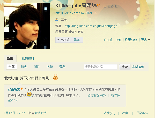 【SIGMA激动0718】JUDY的围脖 最近是要来上海了么