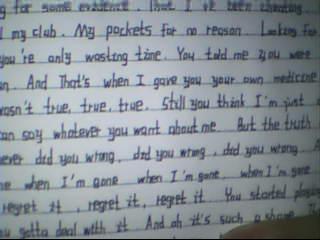 我本来有个歌词本的、纯手抄的、但是被水掉了