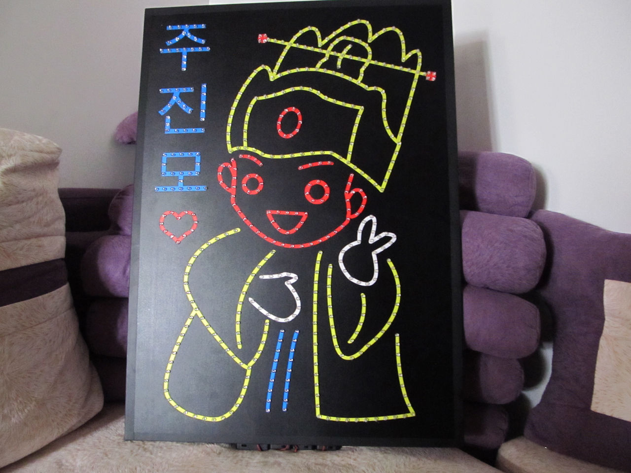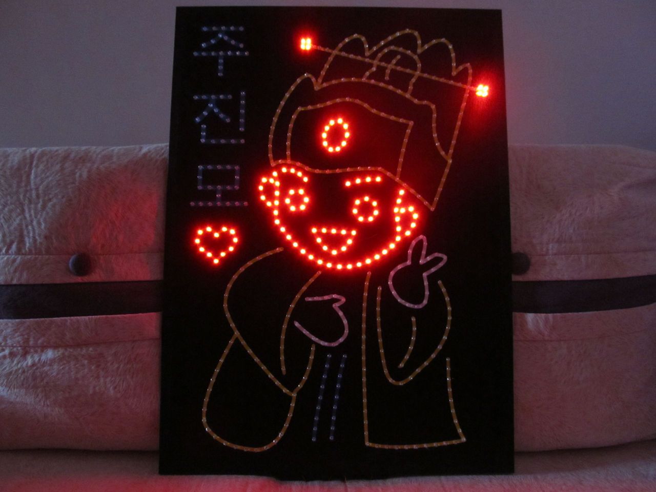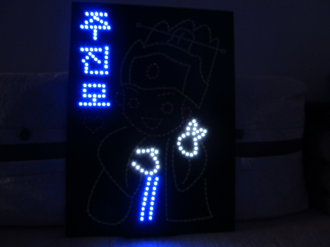 嘻嘻~~9节电池才出来的光呀~~别人家一般两个电池盒就够了。。因为我选的黄色和红色都是不太亮的颜色。所以要加两个电池盒