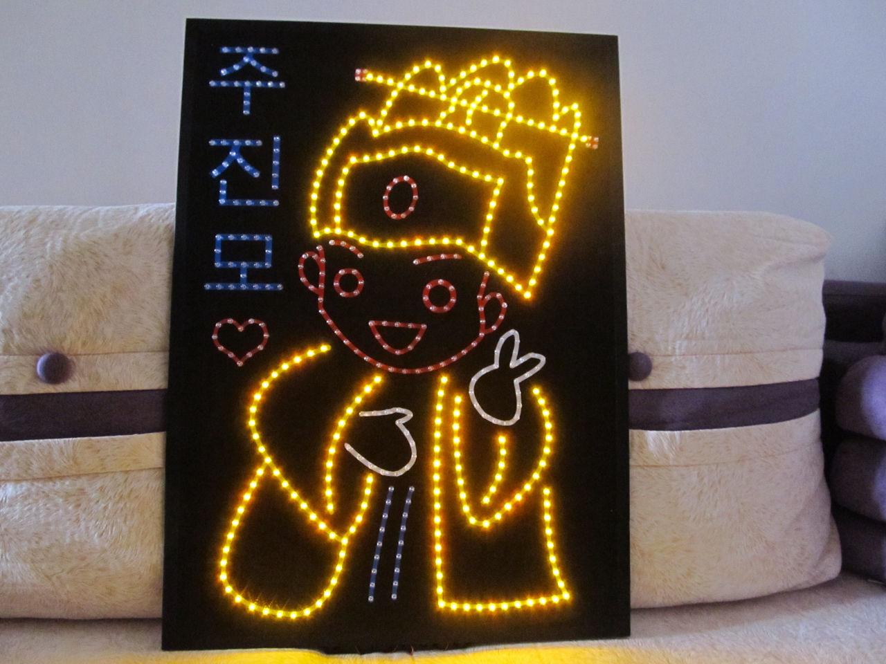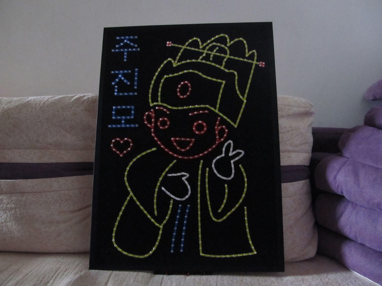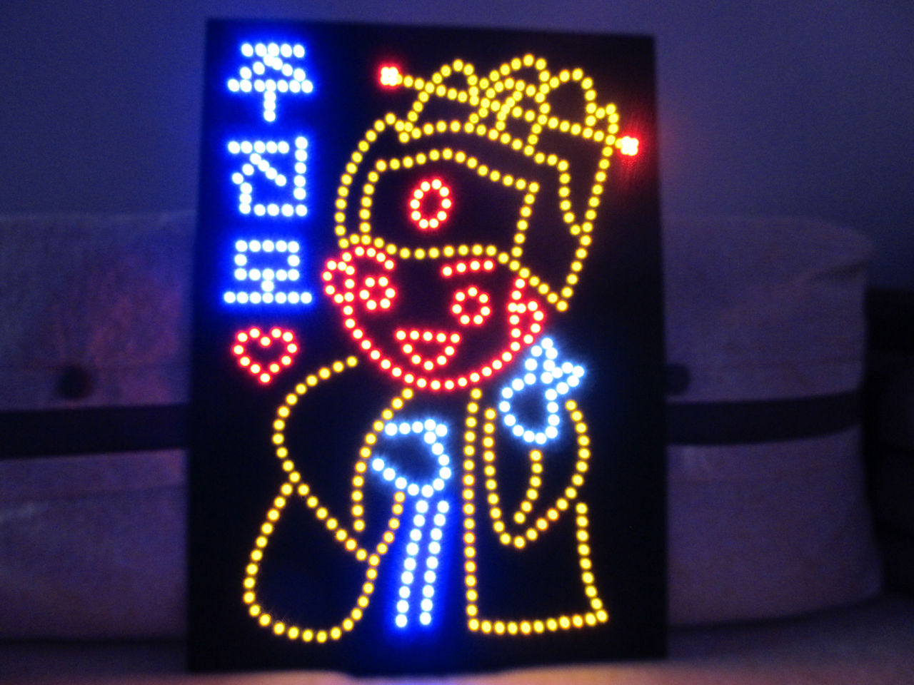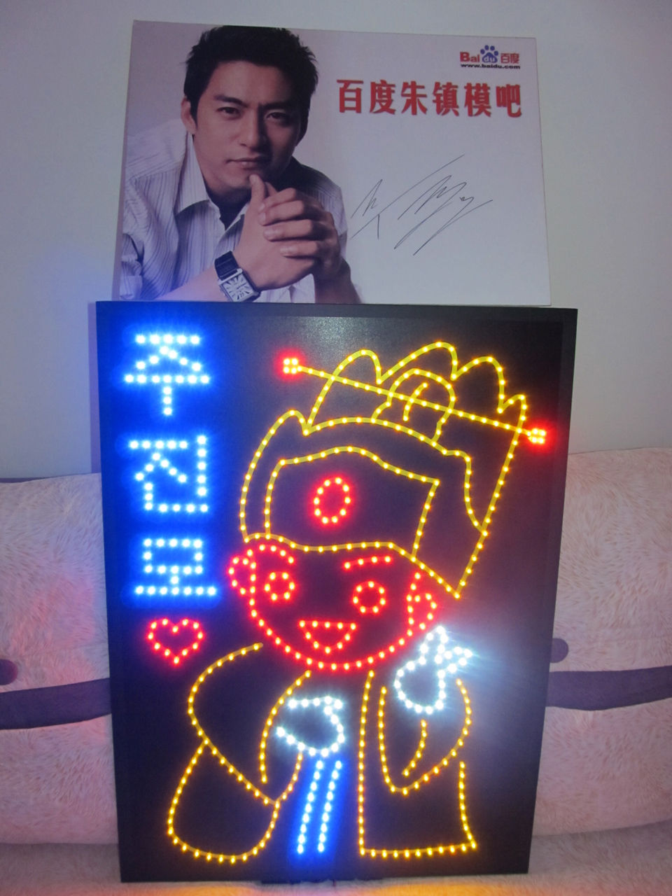 嘻嘻~~9节电池才出来的光呀~~别人家一般两个电池盒就够了。。因为我选的黄色和红色都是不太亮的颜色。所以要加两个电池盒