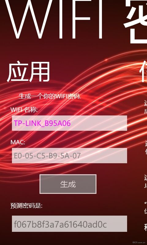 【软件简介】一款通过WiFi名称和MAC,使用MD5加密生成WiFi密码的工具。