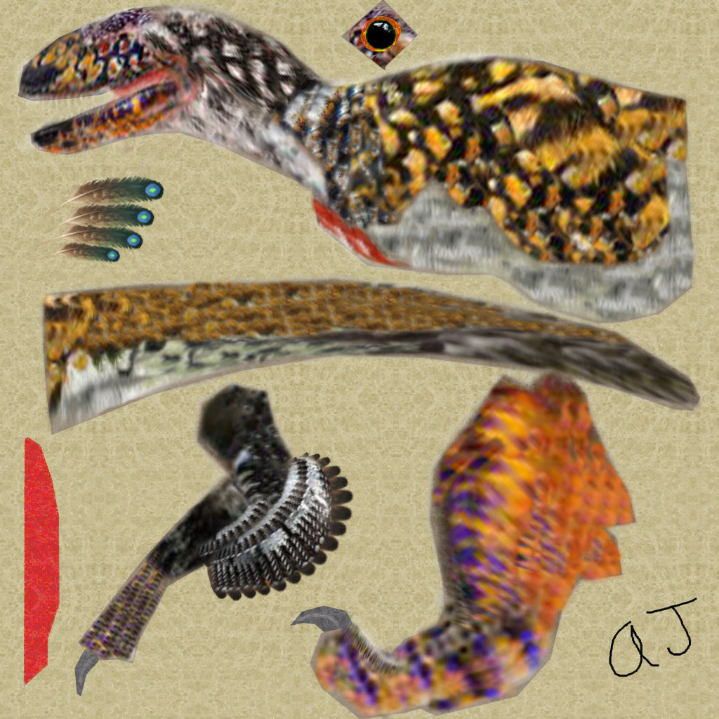 还是用伤齿龙改比较好,改个皮肤、加一点羽毛就行了。
