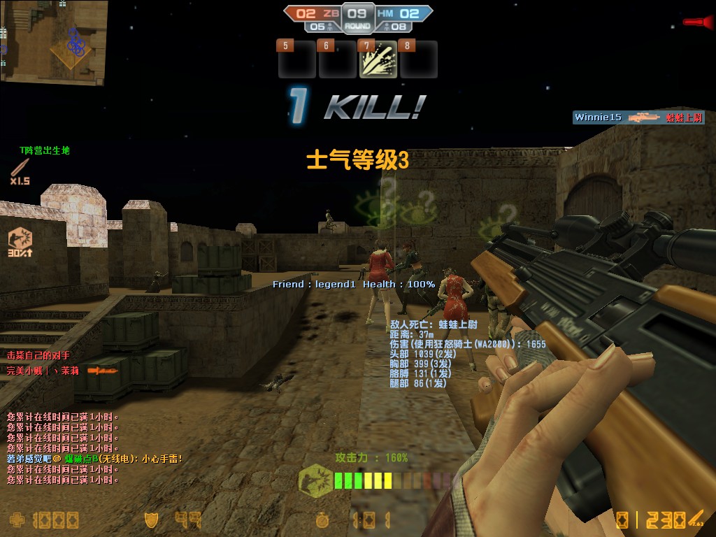 个人感觉到狂怒玩生化的威力很一般,好像不如刚出的时候那么大了,弹道也不算很笔直,抢头效率也不算好,亮点是盲狙加精准。