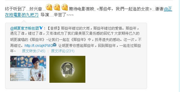 终于听到了...好兴奋... 期待电影首映, <那些年,我们一起追的女孩>...谢谢@正在拍电影的九把刀 导演....辛苦了~~~