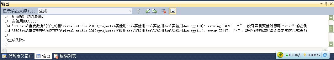 一开始自己写了段代码,只要是有{}的地方编译器都说我没有函数标题,然后就编译失败,一开始我是以为我自己写的有毛病,然后用了几个别人写的能运行的源代码到我这里也是因为没有函数标题编译失败,各位高手,怎么回事啊?我用的是VS2010编译器
