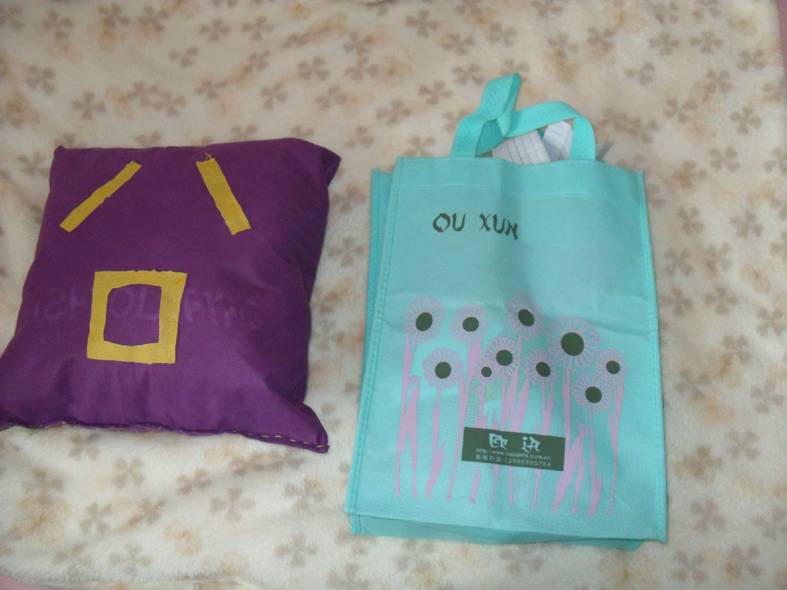 用购物袋做的抱枕 (*^__^*) 第一次DIY哦