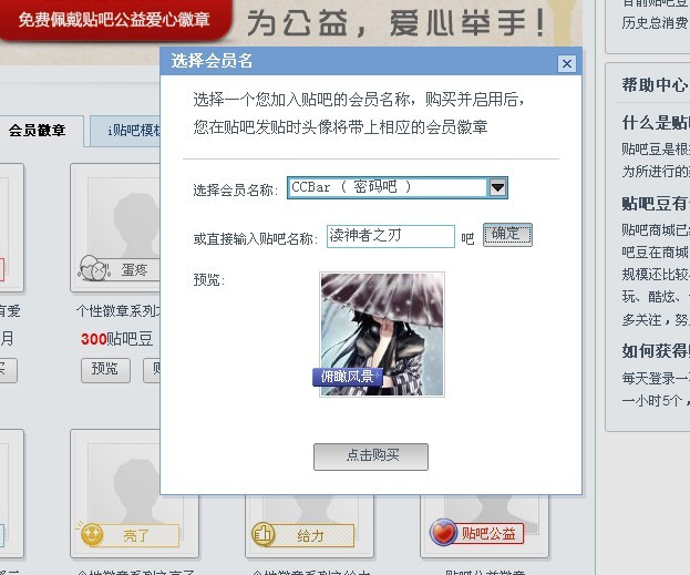 JavaScript:MALL.mallBuy(编号,'badge',0,'1月','贴吧豆')