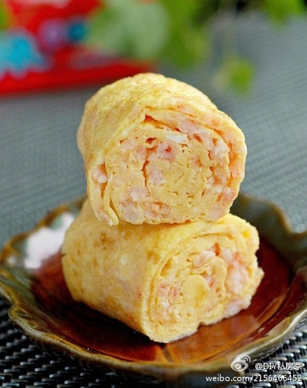 【虾仁厚蛋烧】材料:鸡蛋三个、虾仁100g、牛奶50ml、盐2g。做法:1.虾仁用一点料酒腌制10分钟,切成小粒;2.鸡蛋打散后加入牛奶和虾仁粒以及盐搅匀;3.平底锅放油,中小火加热,倒入一些蛋液;4.蛋液凝结后把蛋饼卷起成厚蛋烧;5.关火在锅中稍微放一会儿定型。然后取出用刀切段装盘。