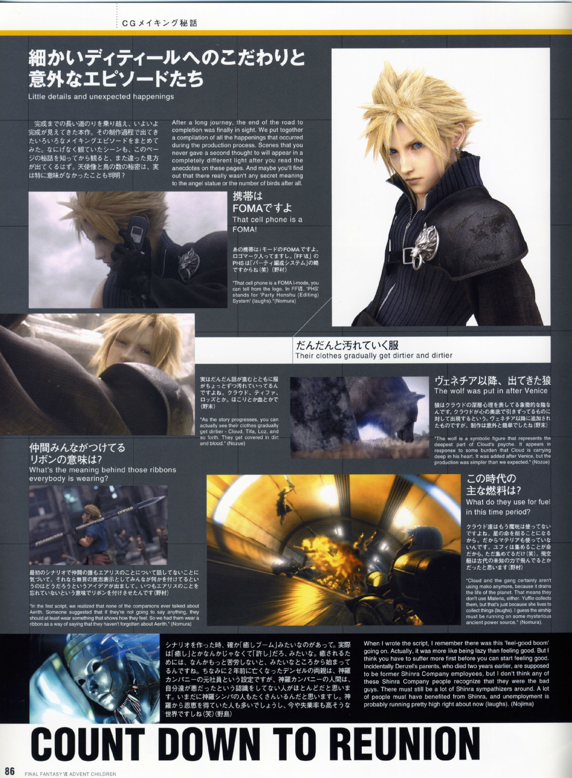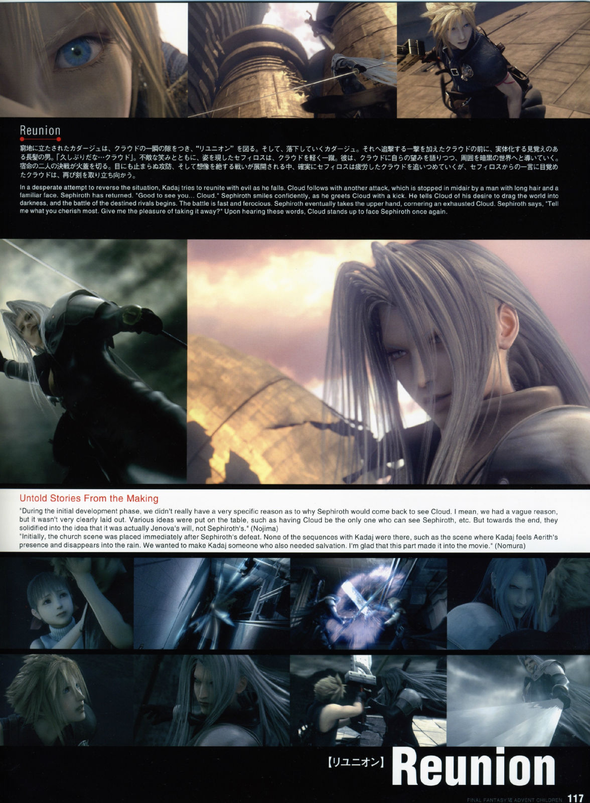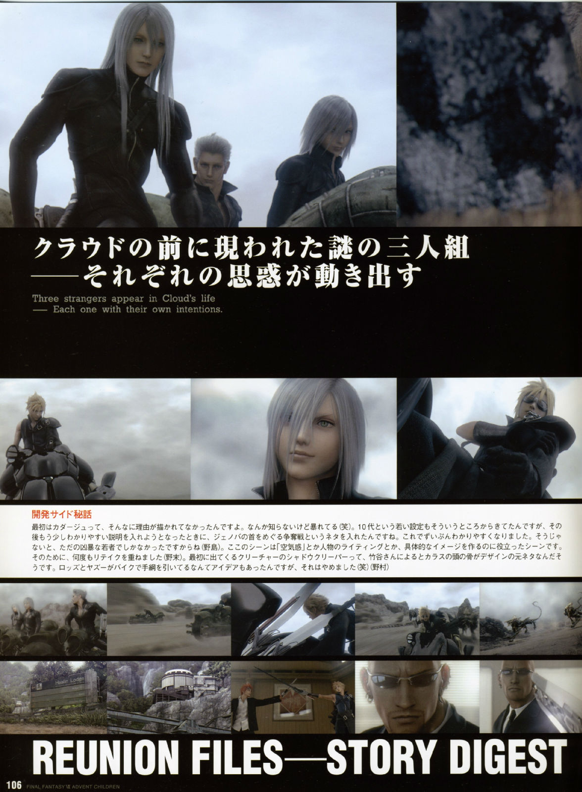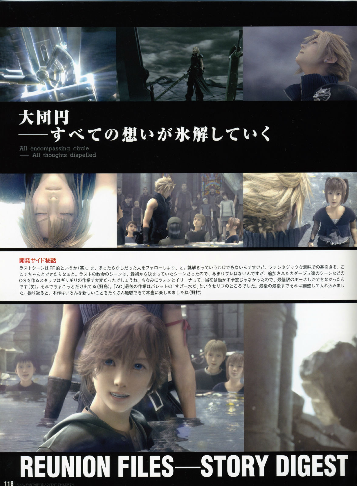 而AC企划的出发点,书中带领著大家追溯到2002年,当时年轻创作者的满腔热情、崭新的创意发想、以及命运般的绝佳时机,共同集结成完美的核心,让这部人气满载的游戏逸作,能够戏剧性的大复活,进而推出电影的豪华创作,因此不管是对剧中的角色人物来说,或者是从事开发的设计工作者来说,都是"Reunion"概念的最佳写照。