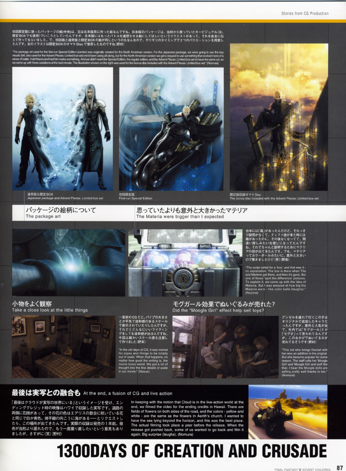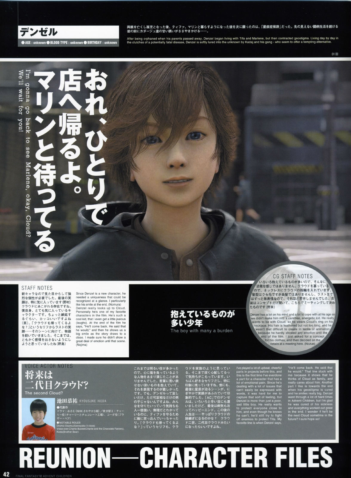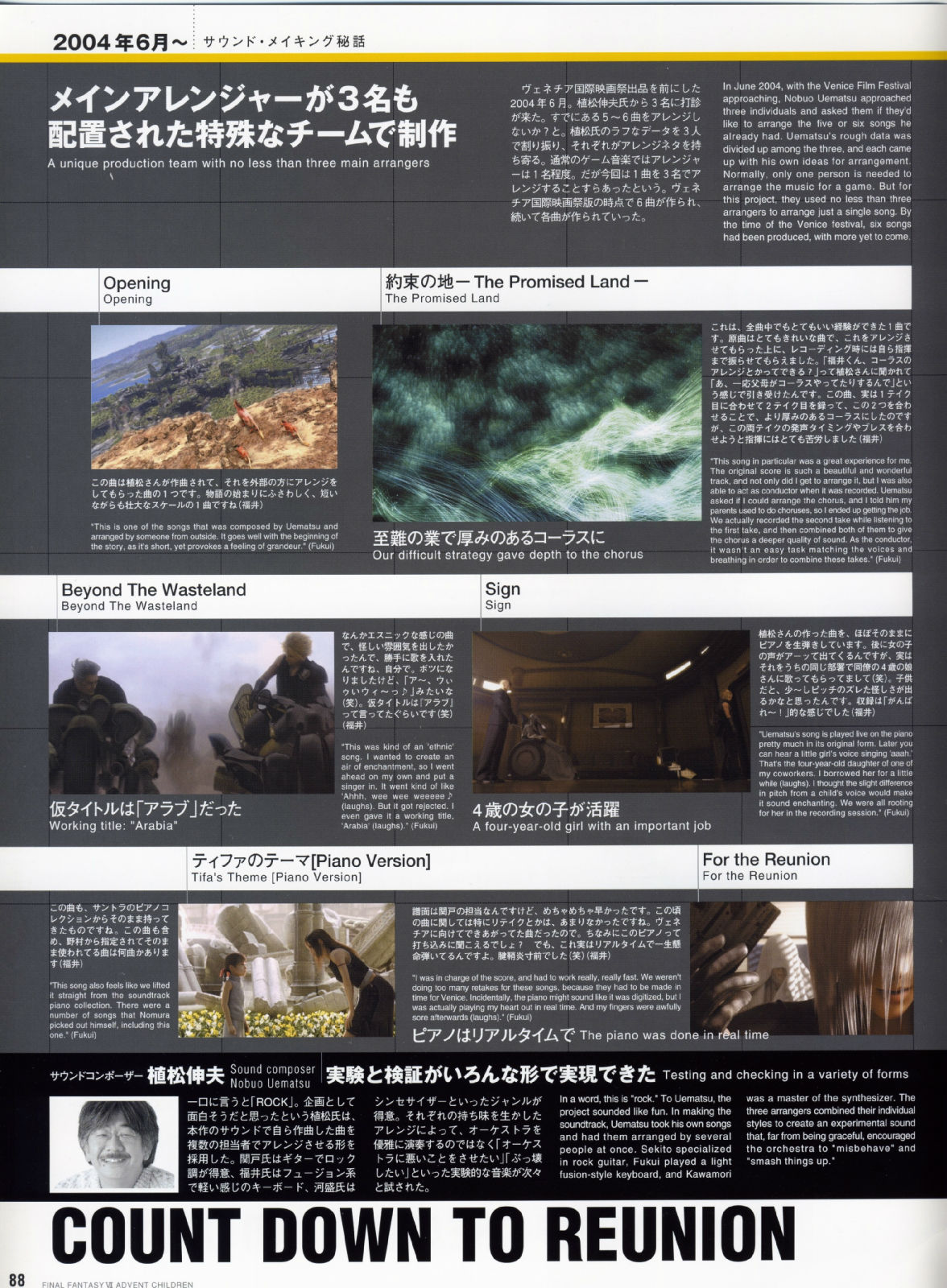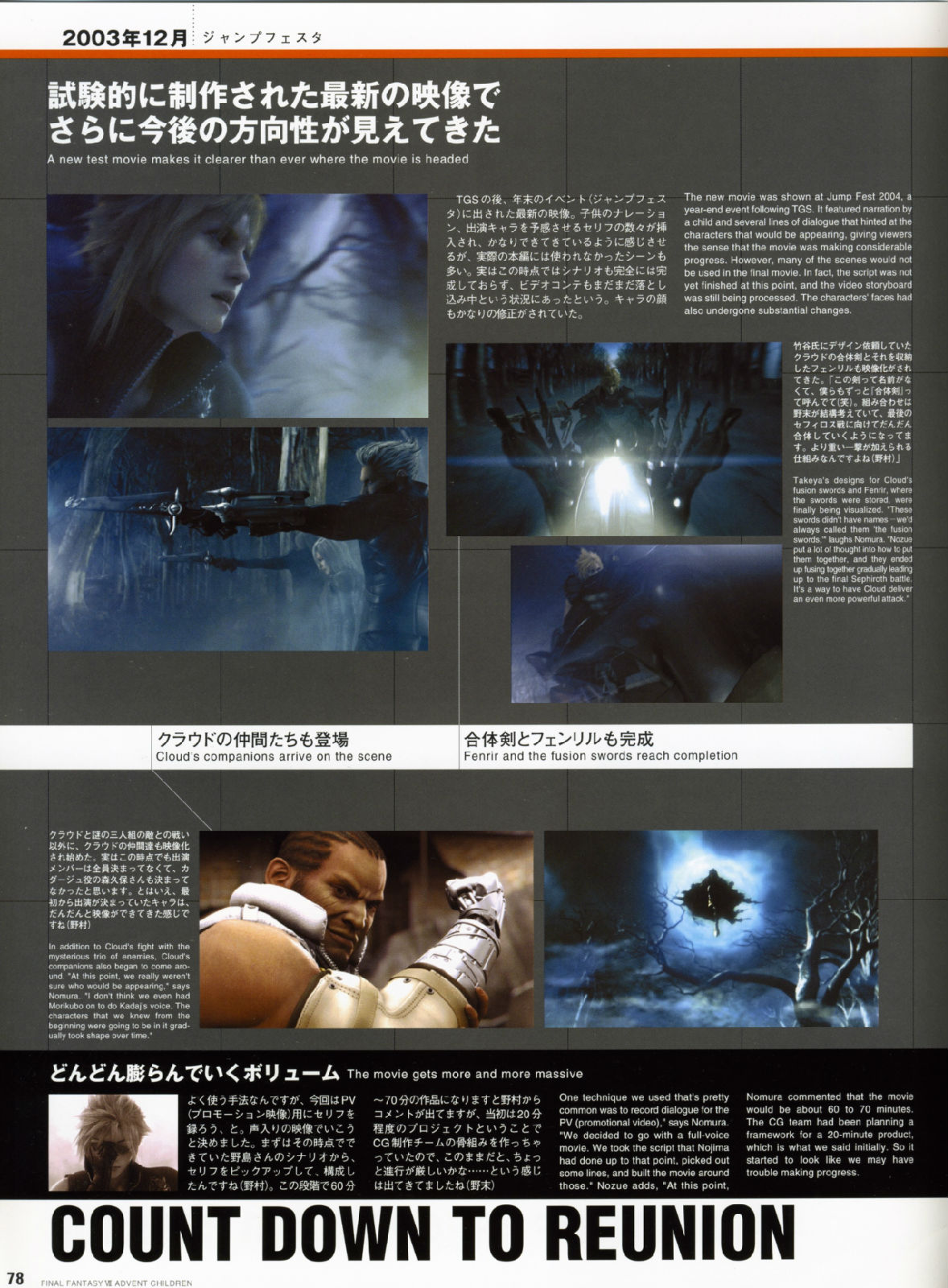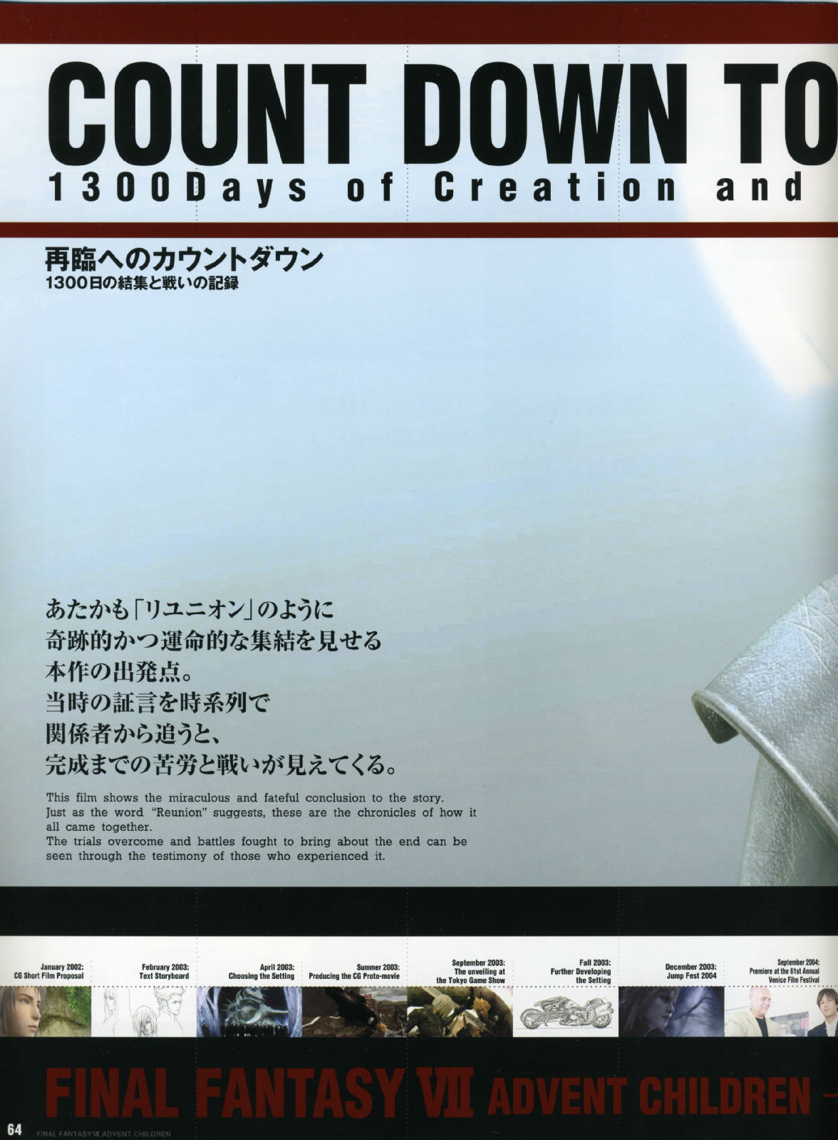 而AC企划的出发点,书中带领著大家追溯到2002年,当时年轻创作者的满腔热情、崭新的创意发想、以及命运般的绝佳时机,共同集结成完美的核心,让这部人气满载的游戏逸作,能够戏剧性的大复活,进而推出电影的豪华创作,因此不管是对剧中的角色人物来说,或者是从事开发的设计工作者来说,都是"Reunion"概念的最佳写照。