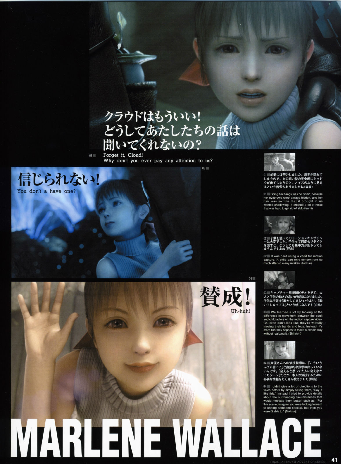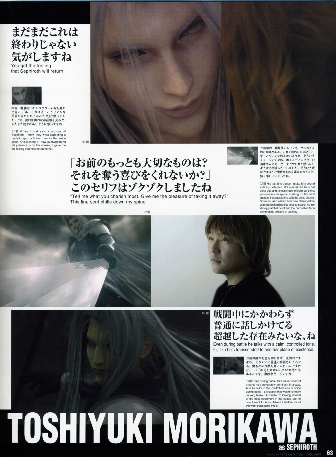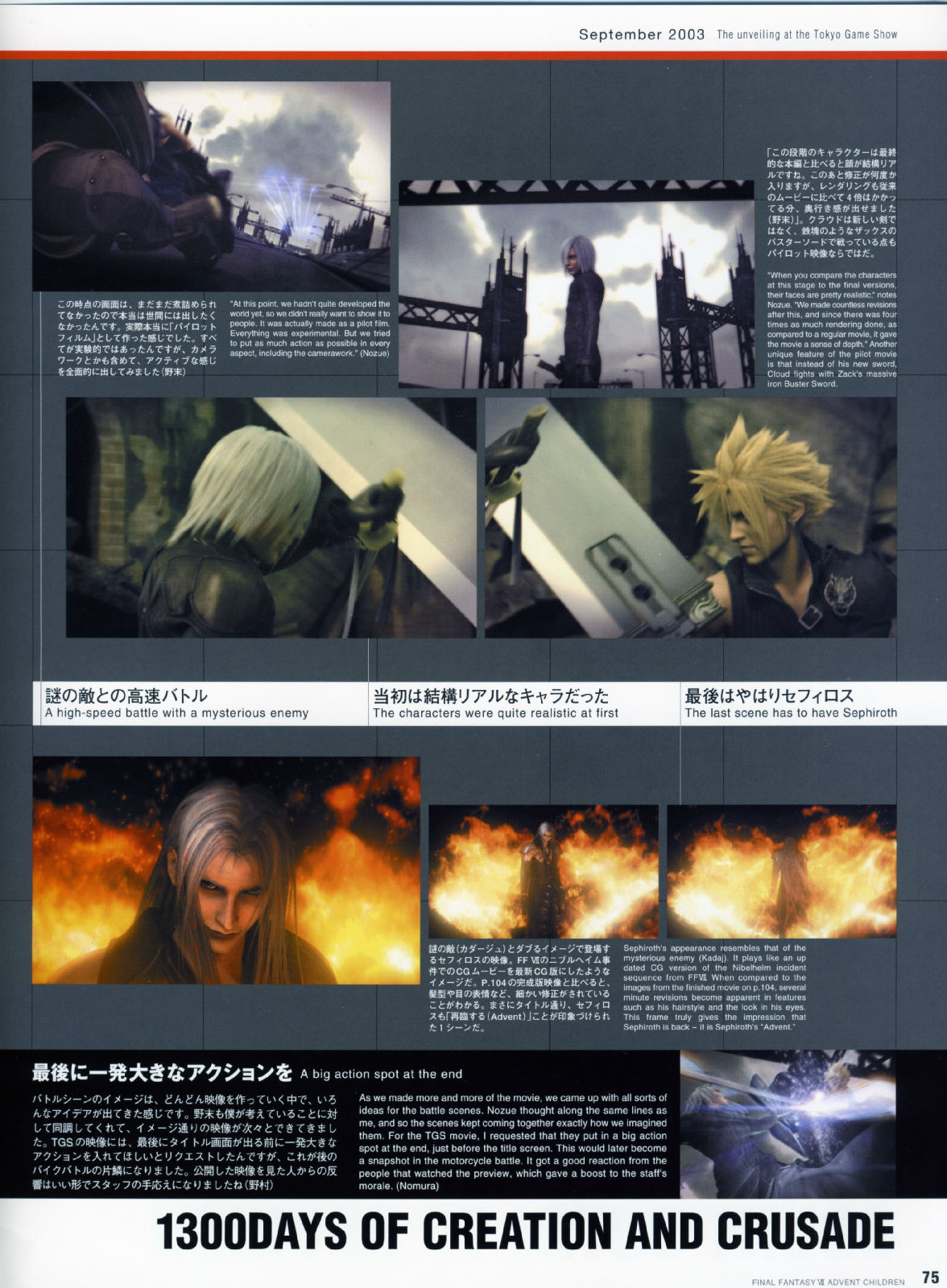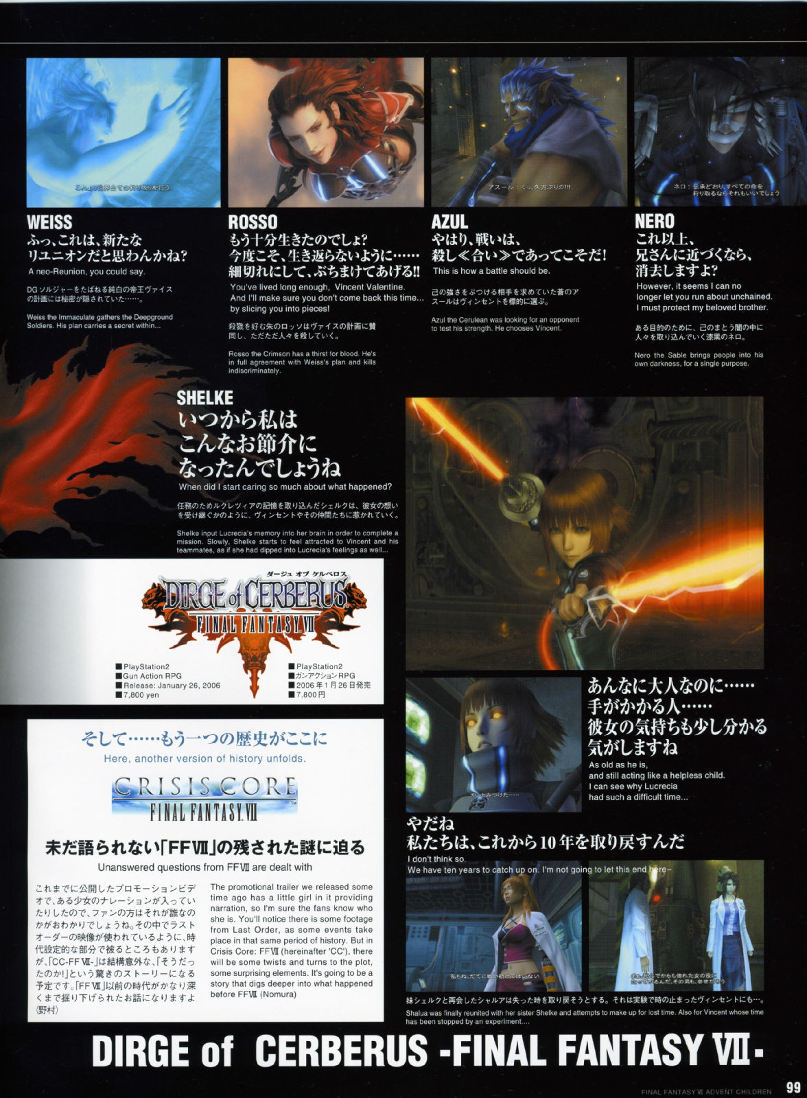 2006年4月3日在全美举办了「太空战士VII神子降临」的试映会,每一个震撼画面的播出,都可以听见观众席里倒抽一口气的赞叹,而不管是克劳德与妖艳的赛菲洛斯大对决,或者是感人的ENDING落幕,都获得了全体的起立致敬,让现场气氛沸腾到最高点,也等於直接宣布了AC的胜利果实。