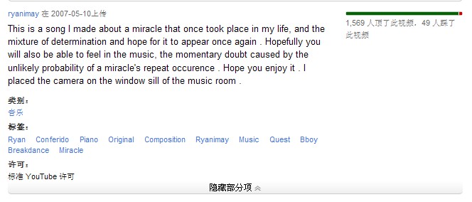 但是视频在you TB上,弄不下来…………叫《My Miracle》