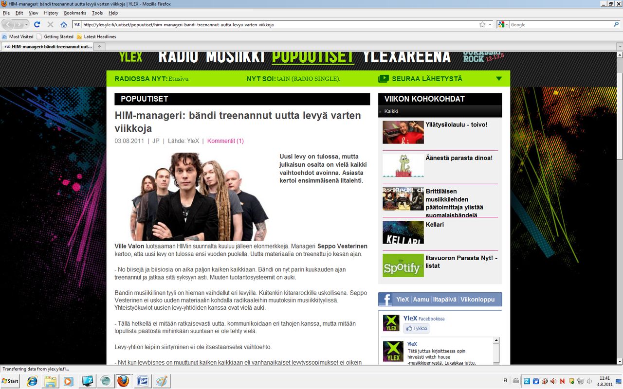 这是在芬兰国家 广播Yleisradio 发布的消息, HIM的经纪人Seppo Vesterinen 发布消息说: HIM的下一张专辑将在明年发行,这个夏天HIM成员接受了 几个月的培训,到秋天结束,然后 说了些乐队的 新专辑的材料,然后 说了 官网hearttngram由于是归旧的公司所有,所以一直没有更新,一直处于混乱。
