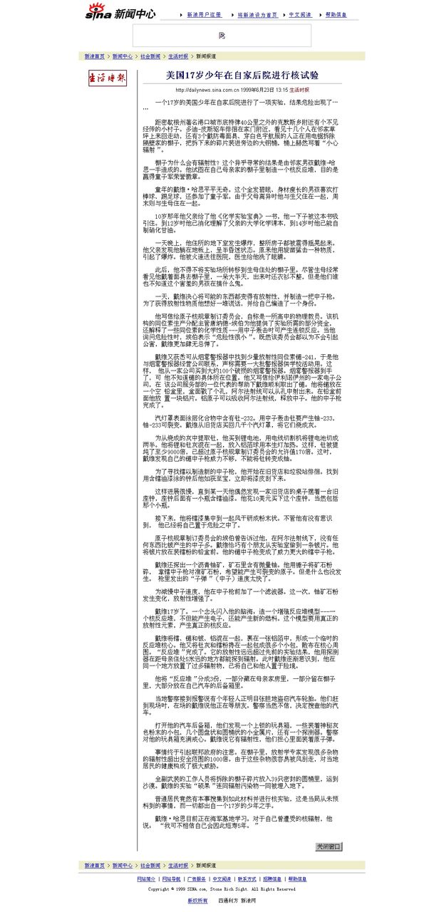那是某米国天才少年吧,听说只是用了些普通的废弃物件就搞出了一个可以实行临界反应的堆子,不过那新闻现在找不到了