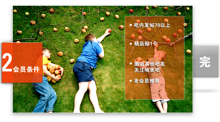 不管回帖还是主题,发帖超过70以上即可点击右侧申请加入本吧会员,成为唯美大使。