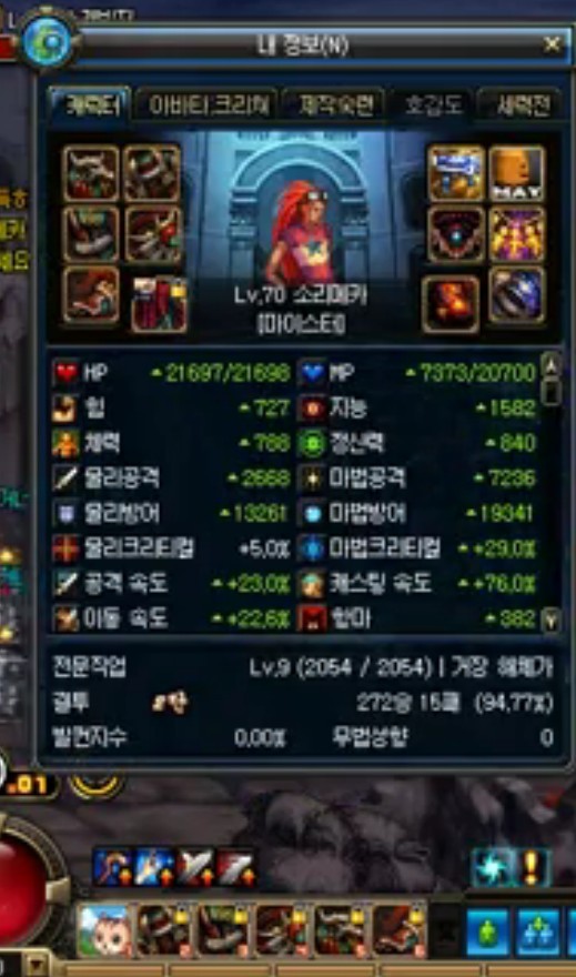 武器600多的基础攻击+手套55+副魔可能是最好的3个25的魔G的 740础攻击*1584*0.004+730=5418 65S大概强到10 200的无视 5600多可能不止 灵魂猎者20%的攻击=6736 差不多的样子